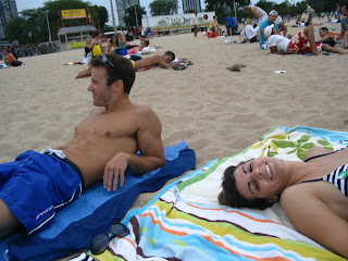 Holly and I went to the beach in Chicago. We had to have picked the absolute worst beach day imaginable. There was NO sun, and that bit about getting sun through the clouds is a bunch of bunk! :-) As we left the beach, we got rained on! Funny part was, we drove all the way to Chicago that day to go to the beach and it was beautiful in Bloomington that day! :-)